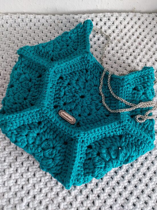 Häkeltasche "Hexa Chic" - geometrische Eleganz in Grau